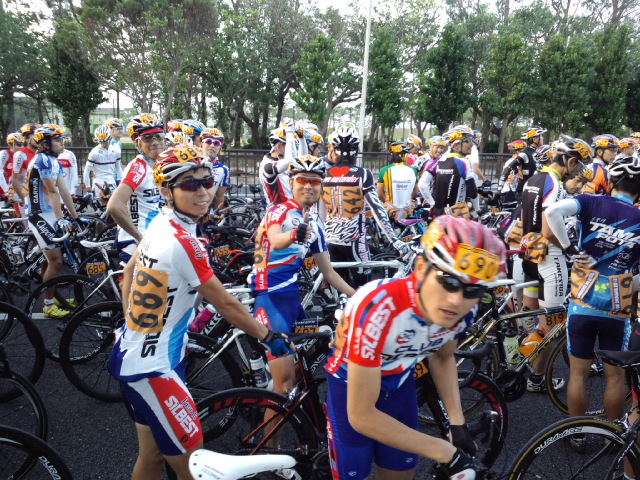 ですが現実はそう甘くなく、とてもレースできる状態にならんかったのでいさぎよく応援ツアーに切り替え。 たまたまM木ファミリーとがっつり同行程だったこともあってとても楽しい3日間でした。 みなさん仲良くスタート待ち。 お〇っこの近いおっさん達はスタート直前になってもばらばらと厠へ。 スタート見送ってからはただひたすら息子とゴールを待つ。 ホテル帰って朝ごはん食べて、浜辺で遊び、会場戻って地元保育園児による激闘三輪車レース(ドリフトあり)を観戦し、それでもまだまだ戻ってこない。 でも皆さん落車もなく無事戻ってきてくれてよかったです。 数年前はダンナがケツずるむけ状態で戻ってきたので。 結果はそれぞれでしょうが、やっぱおきなわの雰囲気はあたたかくてとても好きです。 豚の丸焼きがなかったのは残念だけど、オードブルより今年の各種汁のほうがよかったかな。